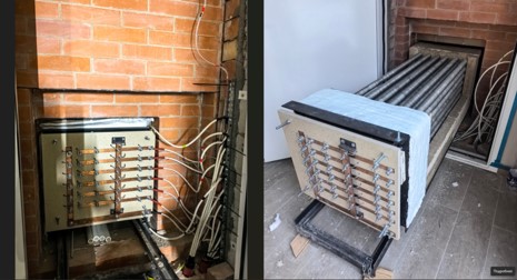 Так как отсутствует открытое горение и образование продуктов горения, а нагрев происходит в плавном режиме, есть возможность замены внешнего контура печной кладки, на более легкую металлокаркасную конструкцию (с дополнительной теплоизоляцией, для оптимальной температуры поверхности).