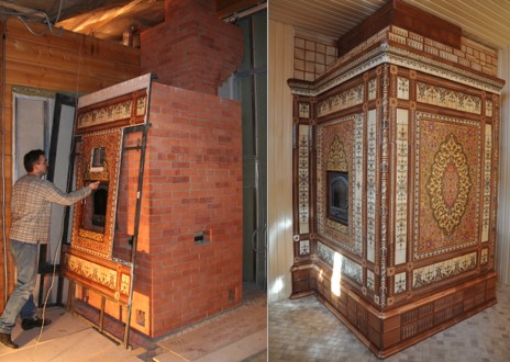 Вернулись примерно через месяц, чтобы облицевать печь изразцами.