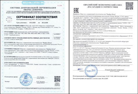 Сертификат № ЕАЭС KG 417/043.RU.02.14271