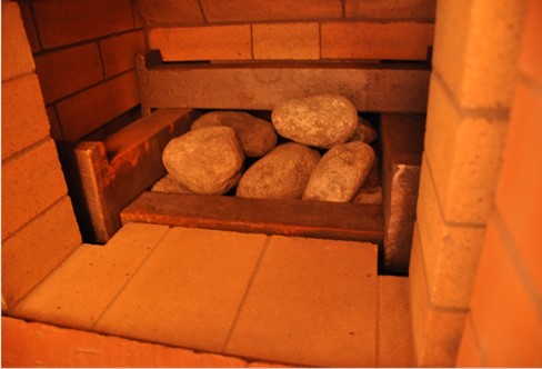 Было удивительно, но камни внутри печи были еще достаточно теплые, около 40 градусов (в течение месяца печь никто не топил)!!!