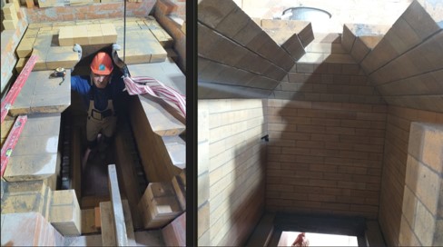 Кладка выполняется в соответствии с разработанными ТУ 28.21.12-003-61758596-2025 и СНиП 111-24-75 “Промышленные печи и кирпичные трубы”.