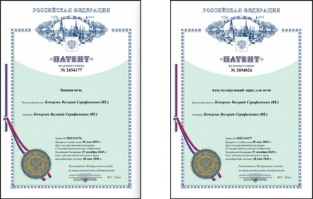 В начале декабря получили положительный результат экспертизы и перед самым Новым годом, получили два патента, один на технологию строительства банных печей и второй патент на разработанную конструкцию аккумулирующего заряда…