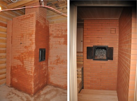 Банные печи с электронагревом, могут строится как по стандартной технологии (полностью из кирпича), так и по “облегченной”.