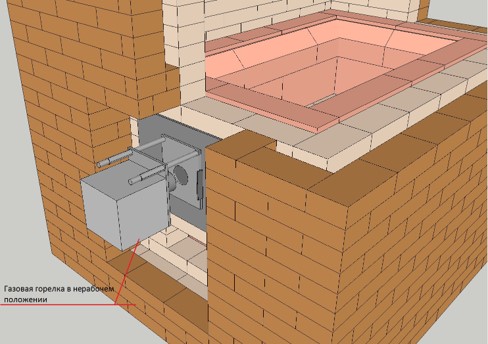 Через 2 года, печь перевели на газовый нагрев (вместо топочной дверки установили газовую горелку).
